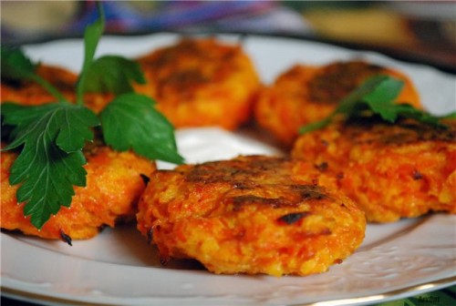 Как приготовить морковные котлеты с сыром и геркулесом. Мелко нарезать морковь, выложить в кастрюлю с кипящим молоком, 10мин проварить на среднем огне, затем всыпать геркулес и сварить вязкую смесь, дать массе остыть и вилкой размять морковь. Положить в смесь сметану, подсолить и перемешать, всыпать просеянную муку – масса должна стать вязкой, добавить тертый сыр, перемешать. Раскалить сковороду, растопить на нем сливочное масло, сделать слабый огонь, ложкой столовой выложить массу в виде тонкой лепешки, сразу посыпать сверху сыром и выложить на сыр еще одну ложку морковной массы – получится котлетка с сыром внутри. Накрыть сковороду крышкой, жарить 1-2мин, затем вилкой или деревянной лопаткой котлету перевернуть, жарить еще столько же на второй стороне. Таким образом приготовить все котлеты.
