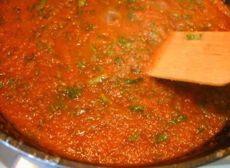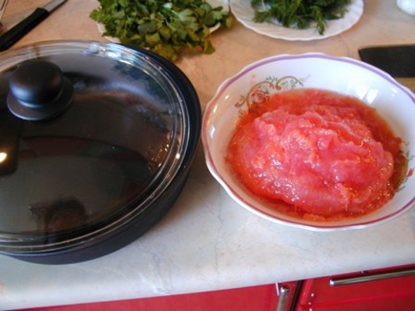 Измельченные укроп и зелень добавляем в соус и тушим еще минут 5-10.