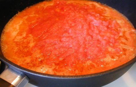 Мясистые помидоры трем на терке, солим, перчим и вливаем в сливочное масло,