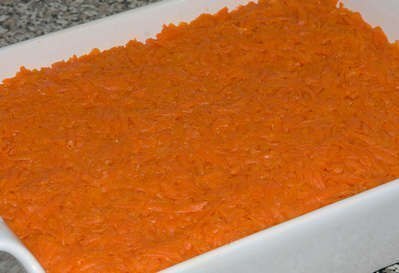 Натрите вареную морковь на крупную терку.