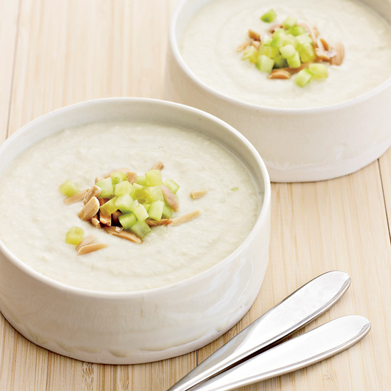 Суп готов! Подержите его в холодильнике подольше, чем больше суп настаивается, тем лучше его вкусовые качества. Перед подачей поставьте в холодильник и тарелки, в которые планируете наливать суп. Разрежьте пополам крупные белые виноградины или порежьте на небольшие ломтики яблоко или дыню. В охлажденные тарелки налейте по порции Ахобланко и добавьте половинки виноградин, кусочки дыни или яблока. Если хочется сделать суп посытнее, не добавляйте фрукты, а нарежьте в суп ломтики печеного картофеля.