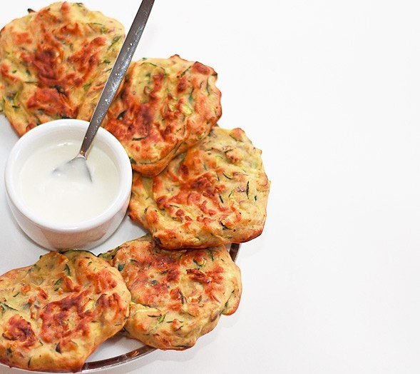 Выложите небольшие порции теста на блюдо для запекания, хорошо смазанное маслом. Выпекайте 16-20 минут в зависимости от размеров оладьев. Затем переверните и готовьте еще 10 минут до золотисто-коричневой корочки с каждой стороны. Подавайте в чесночным майонезом или любым другим соусом.