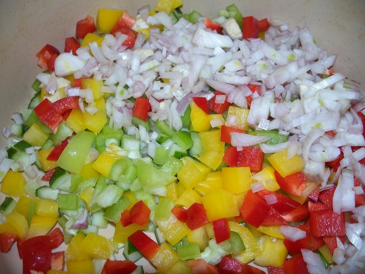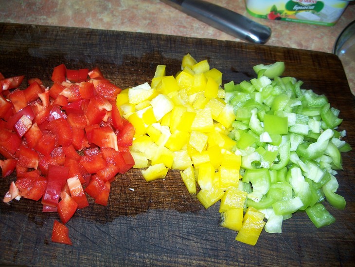 Перец сладкий красный, желтый, зеленый – по ½ шт