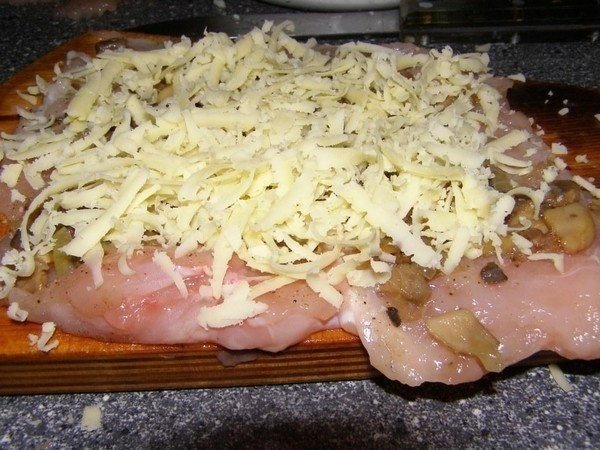 Каждую грудку посыпать тертым сыром.