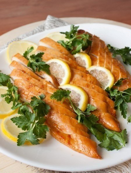 Ставим форму в разогретую до 180 градусов духовку и запекаем, периодически поливая сверху маринадом, около 30-35 минут, пока филе не станет золотисто-коричневым, а соус не выпарится практически полностью.