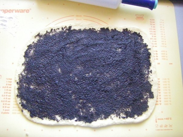 Выкладываем мак и хорошо распеределяем его по поверхности теста.