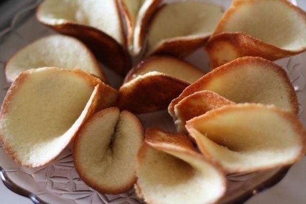 В горячем виде лепёшки нужно свернуть с одного края. Делать это нужно быстро, пока они не остыли, иначе тесто поломается.