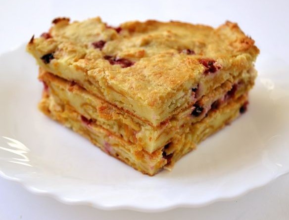 Творожная запеканка с клюквой и кукурузными хлопьями