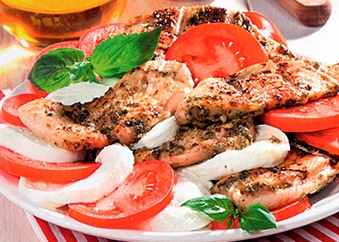 Мясо птицы с моцареллой и помидорами в истинно итальянском стиле.