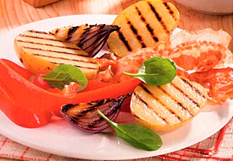 Картофель с луком и маринованным перцем.