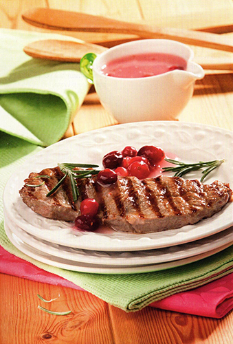 3. Выложить отбивные на решетку гриля и жарить до готовности. Подавать, полив вишневым соусом.