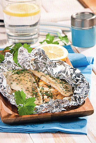 5. Жарить на решетке 20-30 мин, переворачивая. Готовую рыбу подавать на стол прямо в фольге.