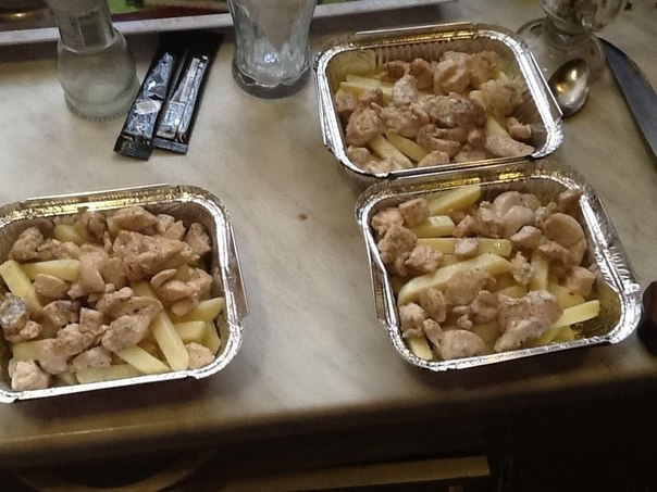 Туда же выкладываем кусочки куриного филе, смазываем грибным соусом, либо просто майонезом.
