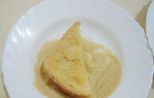 Быстро, чтобы не размяк в молоке хлеб, окунуть подготовленные гренки в смесь.